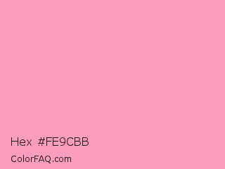 Hex #fe9cbb Color is a light rose color and the nearest color is Pastel Magenta #f49ac2. Hex code #fe9cbb and RGB value is rgb(254,156,187). In RGB color space, this color is composed of 100% red, 61% green, 73% blue, In CMYK color space, this color is composed of 0% cyan, 39% magenta, 26% yellow , 0% black , In HSL color space, this color has a hue angle of 341° , 98% saturation and 80% lightness.