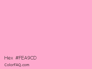 Hex #fea9cd Color is a very light rose color and the nearest color is Carnation Pink #ffa6c9. Hex code #fea9cd and RGB value is rgb(254,169,205). In RGB color space, this color is composed of 100% red, 66% green, 80% blue, In CMYK color space, this color is composed of 0% cyan, 33% magenta, 19% yellow , 0% black , In HSL color space, this color has a hue angle of 335° , 98% saturation and 83% lightness.