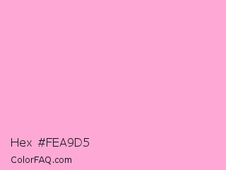 Hex #fea9d5 Color is a very light rose color and the nearest color is Lavender Pink #fbaed2. Hex code #fea9d5 and RGB value is rgb(254,169,213). In RGB color space, this color is composed of 100% red, 66% green, 84% blue, In CMYK color space, this color is composed of 0% cyan, 33% magenta, 16% yellow , 0% black , In HSL color space, this color has a hue angle of 329° , 98% saturation and 83% lightness.