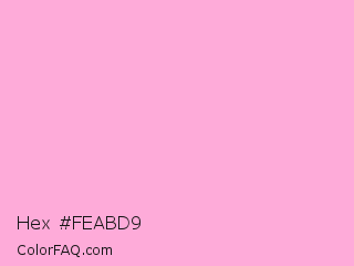Hex #feabd9 Color is a very light magenta color and the nearest color is Lavender Pink #fbaed2. Hex code #feabd9 and RGB value is rgb(254,171,217). In RGB color space, this color is composed of 100% red, 67% green, 85% blue, In CMYK color space, this color is composed of 0% cyan, 33% magenta, 15% yellow , 0% black , In HSL color space, this color has a hue angle of 327° , 98% saturation and 83% lightness.