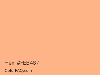 Hex #feb487 Color is a light orange color and the nearest color is Macaroni And Cheese #ffbd88. Hex code #feb487 and RGB value is rgb(254,180,135). In RGB color space, this color is composed of 100% red, 71% green, 53% blue, In CMYK color space, this color is composed of 0% cyan, 29% magenta, 47% yellow , 0% black , In HSL color space, this color has a hue angle of 23° , 98% saturation and 76% lightness.
