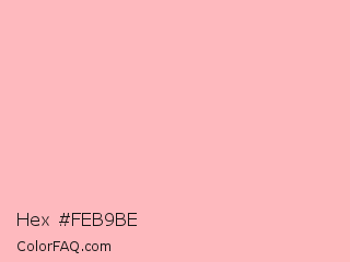 Hex #feb9be Color is a very light red color and the nearest color is Light Pink #ffb6c1. Hex code #feb9be and RGB value is rgb(254,185,190). In RGB color space, this color is composed of 100% red, 73% green, 75% blue, In CMYK color space, this color is composed of 0% cyan, 27% magenta, 25% yellow , 0% black , In HSL color space, this color has a hue angle of 356° , 97% saturation and 86% lightness.
