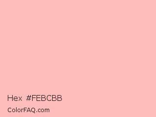 Hex #febcbb Color is a very light red color and the nearest color is Melon #fdbcb4. Hex code #febcbb and RGB value is rgb(254,188,187). In RGB color space, this color is composed of 100% red, 74% green, 73% blue, In CMYK color space, this color is composed of 0% cyan, 26% magenta, 26% yellow , 0% black , In HSL color space, this color has a hue angle of 1° , 97% saturation and 86% lightness.
