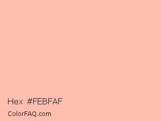 Hex #febfaf Color is a very light red color and the nearest color is Melon Crayola #febaad. Hex code #febfaf and RGB value is rgb(254,191,175). In RGB color space, this color is composed of 100% red, 75% green, 69% blue, In CMYK color space, this color is composed of 0% cyan, 25% magenta, 31% yellow , 0% black , In HSL color space, this color has a hue angle of 12° , 98% saturation and 84% lightness.