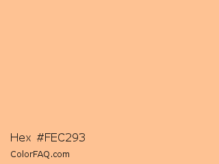 Hex #fec293 Color is a light orange color and the nearest color is Peach Orange #ffcc99. Hex code #fec293 and RGB value is rgb(254,194,147). In RGB color space, this color is composed of 100% red, 76% green, 58% blue, In CMYK color space, this color is composed of 0% cyan, 24% magenta, 42% yellow , 0% black , In HSL color space, this color has a hue angle of 26° , 98% saturation and 79% lightness.