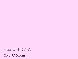 Hex #fed7fa Color is a very light magenta color and the nearest color is Pink Lace #ffddf4. Hex code #fed7fa and RGB value is rgb(254,215,250). In RGB color space, this color is composed of 100% red, 84% green, 98% blue, In CMYK color space, this color is composed of 0% cyan, 15% magenta, 2% yellow , 0% black , In HSL color space, this color has a hue angle of 306° , 95% saturation and 92% lightness.