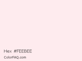 Hex #feebee Color is a almost white red color and the nearest color is Fair Pink #ffefec. Hex code #feebee and RGB value is rgb(254,235,238). In RGB color space, this color is composed of 100% red, 92% green, 93% blue, In CMYK color space, this color is composed of 0% cyan, 7% magenta, 6% yellow , 0% black , In HSL color space, this color has a hue angle of 351° , 90% saturation and 96% lightness.