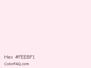 Hex #feebf1 Color is a almost white rose color and the nearest color is Remy #feebf3. Hex code #feebf1 and RGB value is rgb(254,235,241). In RGB color space, this color is composed of 100% red, 92% green, 95% blue, In CMYK color space, this color is composed of 0% cyan, 7% magenta, 5% yellow , 0% black , In HSL color space, this color has a hue angle of 341° , 90% saturation and 96% lightness.