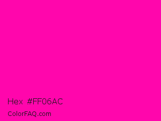 Hex #ff06ac Color is a normal magenta color and the nearest color is Hollywood Cerise #f400a1. Hex code #ff06ac and RGB value is rgb(255,6,172). In RGB color space, this color is composed of 100% red, 2% green, 67% blue, In CMYK color space, this color is composed of 0% cyan, 98% magenta, 33% yellow , 0% black , In HSL color space, this color has a hue angle of 320° , 100% saturation and 51% lightness.
