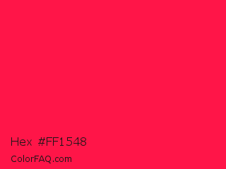 Hex #ff1548 Color is a normal red color and the nearest color is Awesome #ff2052. Hex code #ff1548 and RGB value is rgb(255,21,72). In RGB color space, this color is composed of 100% red, 8% green, 28% blue, In CMYK color space, this color is composed of 0% cyan, 92% magenta, 72% yellow , 0% black , In HSL color space, this color has a hue angle of 347° , 100% saturation and 54% lightness.