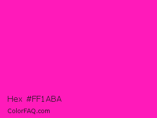 Hex #ff1aba Color is a normal magenta color and the nearest color is Shocking Pink #fc0fc0. Hex code #ff1aba and RGB value is rgb(255,26,186). In RGB color space, this color is composed of 100% red, 10% green, 73% blue, In CMYK color space, this color is composed of 0% cyan, 90% magenta, 27% yellow , 0% black , In HSL color space, this color has a hue angle of 318° , 100% saturation and 55% lightness.