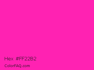 Hex #ff22b2 Color is a normal magenta color and the nearest color is Persian Rose #fe28a2. Hex code #ff22b2 and RGB value is rgb(255,34,178). In RGB color space, this color is composed of 100% red, 13% green, 70% blue, In CMYK color space, this color is composed of 0% cyan, 87% magenta, 30% yellow , 0% black , In HSL color space, this color has a hue angle of 321° , 100% saturation and 57% lightness.
