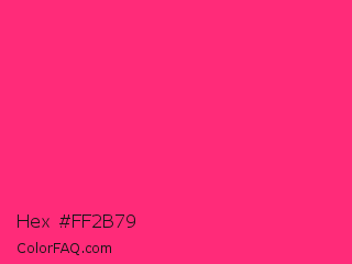 Hex #ff2b79 Color is a normal rose color and the nearest color is Cerise Pink #ec3b83. Hex code #ff2b79 and RGB value is rgb(255,43,121). In RGB color space, this color is composed of 100% red, 17% green, 47% blue, In CMYK color space, this color is composed of 0% cyan, 83% magenta, 53% yellow , 0% black , In HSL color space, this color has a hue angle of 338° , 100% saturation and 58% lightness.