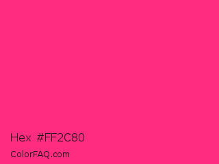Hex #ff2c80 Color is a normal rose color and the nearest color is Cerise Pink #ec3b83. Hex code #ff2c80 and RGB value is rgb(255,44,128). In RGB color space, this color is composed of 100% red, 17% green, 50% blue, In CMYK color space, this color is composed of 0% cyan, 83% magenta, 50% yellow , 0% black , In HSL color space, this color has a hue angle of 336° , 100% saturation and 59% lightness.