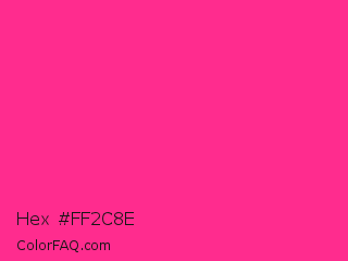 Hex #ff2c8e Color is a normal rose color and the nearest color is Wild Strawberry Crayola #ff3399. Hex code #ff2c8e and RGB value is rgb(255,44,142). In RGB color space, this color is composed of 100% red, 17% green, 56% blue, In CMYK color space, this color is composed of 0% cyan, 83% magenta, 44% yellow , 0% black , In HSL color space, this color has a hue angle of 332° , 100% saturation and 59% lightness.