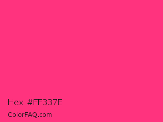 Hex #ff337e Color is a normal rose color and the nearest color is Sasquatch Socks #ff4681. Hex code #ff337e and RGB value is rgb(255,51,126). In RGB color space, this color is composed of 100% red, 20% green, 49% blue, In CMYK color space, this color is composed of 0% cyan, 80% magenta, 51% yellow , 0% black , In HSL color space, this color has a hue angle of 338° , 100% saturation and 60% lightness.