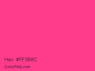 Hex #ff3b8c Color is a light rose color and the nearest color is French Fuchsia #fd3f92. Hex code #ff3b8c and RGB value is rgb(255,59,140). In RGB color space, this color is composed of 100% red, 23% green, 55% blue, In CMYK color space, this color is composed of 0% cyan, 77% magenta, 45% yellow , 0% black , In HSL color space, this color has a hue angle of 335° , 100% saturation and 62% lightness.