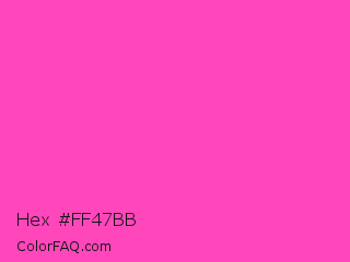 Hex #ff47bb Color is a light magenta color and the nearest color is Wild Strawberry #ff43a4. Hex code #ff47bb and RGB value is rgb(255,71,187). In RGB color space, this color is composed of 100% red, 28% green, 73% blue, In CMYK color space, this color is composed of 0% cyan, 72% magenta, 27% yellow , 0% black , In HSL color space, this color has a hue angle of 322° , 100% saturation and 64% lightness.