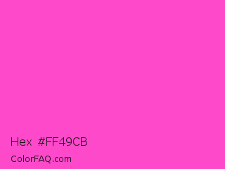 Hex #ff49cb Color is a light magenta color and the nearest color is Purple Pizzazz #fe4eda. Hex code #ff49cb and RGB value is rgb(255,73,203). In RGB color space, this color is composed of 100% red, 29% green, 80% blue, In CMYK color space, this color is composed of 0% cyan, 71% magenta, 20% yellow , 0% black , In HSL color space, this color has a hue angle of 317° , 100% saturation and 64% lightness.