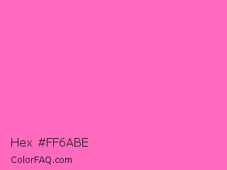 Hex #ff6abe Color is a light magenta color and the nearest color is Hot Pink #ff69b4. Hex code #ff6abe and RGB value is rgb(255,106,190). In RGB color space, this color is composed of 100% red, 42% green, 75% blue, In CMYK color space, this color is composed of 0% cyan, 58% magenta, 25% yellow , 0% black , In HSL color space, this color has a hue angle of 326° , 100% saturation and 71% lightness.