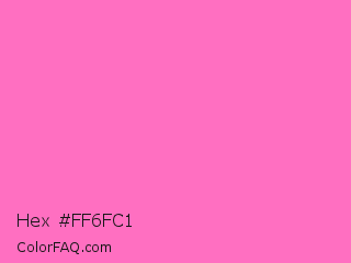 Hex #ff6fc1 Color is a light magenta color and the nearest color is Rose Pink #ff66cc. Hex code #ff6fc1 and RGB value is rgb(255,111,193). In RGB color space, this color is composed of 100% red, 44% green, 76% blue, In CMYK color space, this color is composed of 0% cyan, 56% magenta, 24% yellow , 0% black , In HSL color space, this color has a hue angle of 326° , 100% saturation and 72% lightness.
