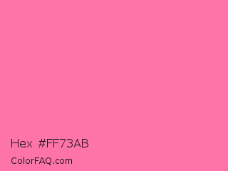 Hex #ff73ab Color is a light rose color and the nearest color is Hot Pink #ff69b4. Hex code #ff73ab and RGB value is rgb(255,115,171). In RGB color space, this color is composed of 100% red, 45% green, 67% blue, In CMYK color space, this color is composed of 0% cyan, 55% magenta, 33% yellow , 0% black , In HSL color space, this color has a hue angle of 336° , 100% saturation and 73% lightness.