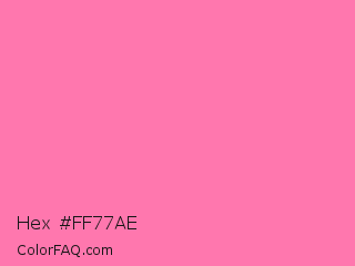 Hex #ff77ae Color is a light rose color and the nearest color is Tickle Me Pink Crayola #fc80a5. Hex code #ff77ae and RGB value is rgb(255,119,174). In RGB color space, this color is composed of 100% red, 47% green, 68% blue, In CMYK color space, this color is composed of 0% cyan, 53% magenta, 32% yellow , 0% black , In HSL color space, this color has a hue angle of 336° , 100% saturation and 73% lightness.
