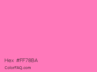 Hex #ff78ba Color is a light rose color and the nearest color is Persian Pink #f77fbe. Hex code #ff78ba and RGB value is rgb(255,120,186). In RGB color space, this color is composed of 100% red, 47% green, 73% blue, In CMYK color space, this color is composed of 0% cyan, 53% magenta, 27% yellow , 0% black , In HSL color space, this color has a hue angle of 331° , 100% saturation and 74% lightness.