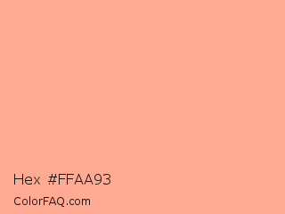 Hex #ffaa93 Color is a light red color and the nearest color is Mona Lisa #ffa194. Hex code #ffaa93 and RGB value is rgb(255,170,147). In RGB color space, this color is composed of 100% red, 67% green, 58% blue, In CMYK color space, this color is composed of 0% cyan, 33% magenta, 42% yellow , 0% black , In HSL color space, this color has a hue angle of 13° , 100% saturation and 79% lightness.