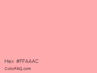 Hex #ffaaac Color is a very light red color and the nearest color is Cornflower Lilac #ffb0ac. Hex code #ffaaac and RGB value is rgb(255,170,172). In RGB color space, this color is composed of 100% red, 67% green, 67% blue, In CMYK color space, this color is composed of 0% cyan, 33% magenta, 33% yellow , 0% black , In HSL color space, this color has a hue angle of 359° , 100% saturation and 83% lightness.