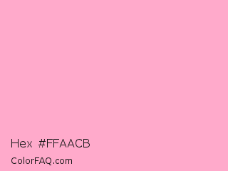 Hex #ffaacb Color is a very light rose color and the nearest color is Carnation Pink #ffa6c9. Hex code #ffaacb and RGB value is rgb(255,170,203). In RGB color space, this color is composed of 100% red, 67% green, 80% blue, In CMYK color space, this color is composed of 0% cyan, 33% magenta, 20% yellow , 0% black , In HSL color space, this color has a hue angle of 337° , 100% saturation and 83% lightness.
