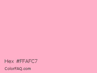 Hex #ffafc7 Color is a very light rose color and the nearest color is Cherry Blossom Pink #ffb7c5. Hex code #ffafc7 and RGB value is rgb(255,175,199). In RGB color space, this color is composed of 100% red, 69% green, 78% blue, In CMYK color space, this color is composed of 0% cyan, 31% magenta, 22% yellow , 0% black , In HSL color space, this color has a hue angle of 342° , 100% saturation and 84% lightness.