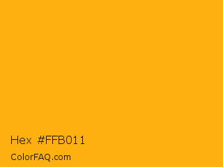 Hex #ffb011 Color is a normal orange color and the nearest color is Sun #fbac13. Hex code #ffb011 and RGB value is rgb(255,176,17). In RGB color space, this color is composed of 100% red, 69% green, 7% blue, In CMYK color space, this color is composed of 0% cyan, 31% magenta, 93% yellow , 0% black , In HSL color space, this color has a hue angle of 40° , 100% saturation and 53% lightness.