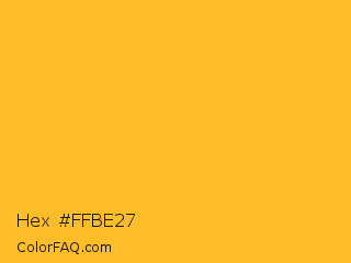 Hex #ffbe27 Color is a normal orange color and the nearest color is Lightning Yellow #fcc01e. Hex code #ffbe27 and RGB value is rgb(255,190,39). In RGB color space, this color is composed of 100% red, 75% green, 15% blue, In CMYK color space, this color is composed of 0% cyan, 25% magenta, 85% yellow , 0% black , In HSL color space, this color has a hue angle of 42° , 100% saturation and 58% lightness.