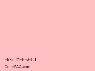 Hex #ffbec1 Color is a very light red color and the nearest color is Your Pink #ffc3c0. Hex code #ffbec1 and RGB value is rgb(255,190,193). In RGB color space, this color is composed of 100% red, 75% green, 76% blue, In CMYK color space, this color is composed of 0% cyan, 25% magenta, 24% yellow , 0% black , In HSL color space, this color has a hue angle of 357° , 100% saturation and 87% lightness.