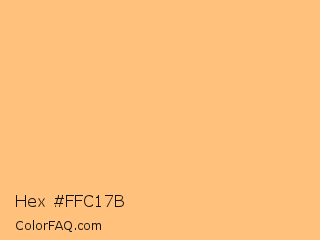Hex #ffc17b Color is a light orange color and the nearest color is Topaz #ffc87c. Hex code #ffc17b and RGB value is rgb(255,193,123). In RGB color space, this color is composed of 100% red, 76% green, 48% blue, In CMYK color space, this color is composed of 0% cyan, 24% magenta, 52% yellow , 0% black , In HSL color space, this color has a hue angle of 32° , 100% saturation and 74% lightness.