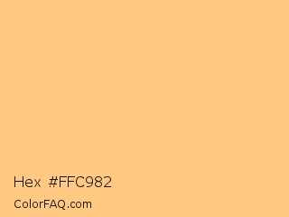Hex #ffc982 Color is a light orange color and the nearest color is Topaz #ffc87c. Hex code #ffc982 and RGB value is rgb(255,201,130). In RGB color space, this color is composed of 100% red, 79% green, 51% blue, In CMYK color space, this color is composed of 0% cyan, 21% magenta, 49% yellow , 0% black , In HSL color space, this color has a hue angle of 34° , 100% saturation and 75% lightness.