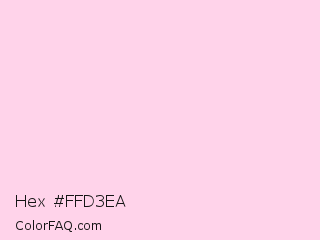 Hex #ffd3ea Color is a very light rose color and the nearest color is Mimi Pink #ffdae9. Hex code #ffd3ea and RGB value is rgb(255,211,234). In RGB color space, this color is composed of 100% red, 83% green, 92% blue, In CMYK color space, this color is composed of 0% cyan, 17% magenta, 8% yellow , 0% black , In HSL color space, this color has a hue angle of 329° , 100% saturation and 91% lightness.