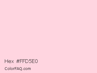 Hex #ffd5e0 Color is a very light rose color and the nearest color is Pig Pink #fdd7e4. Hex code #ffd5e0 and RGB value is rgb(255,213,224). In RGB color space, this color is composed of 100% red, 84% green, 88% blue, In CMYK color space, this color is composed of 0% cyan, 16% magenta, 12% yellow , 0% black , In HSL color space, this color has a hue angle of 344° , 100% saturation and 92% lightness.