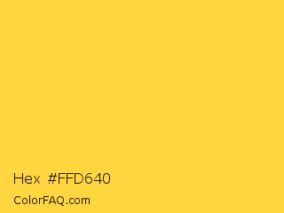 Hex #ffd640 Color is a light yellow color and the nearest color is Bright Sun #fed33c. Hex code #ffd640 and RGB value is rgb(255,214,64). In RGB color space, this color is composed of 100% red, 84% green, 25% blue, In CMYK color space, this color is composed of 0% cyan, 16% magenta, 75% yellow , 0% black , In HSL color space, this color has a hue angle of 47° , 100% saturation and 63% lightness.