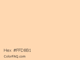 Hex #ffd8b1 Color is a very light orange color and the nearest color is Light Orange #fed8b1. Hex code #ffd8b1 and RGB value is rgb(255,216,177). In RGB color space, this color is composed of 100% red, 85% green, 69% blue, In CMYK color space, this color is composed of 0% cyan, 15% magenta, 31% yellow , 0% black , In HSL color space, this color has a hue angle of 30° , 100% saturation and 85% lightness.