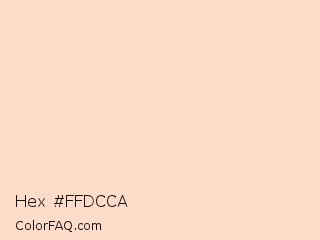 Hex #ffdcca Color is a very light orange color and the nearest color is Unbleached Silk #ffddca. Hex code #ffdcca and RGB value is rgb(255,220,202). In RGB color space, this color is composed of 100% red, 86% green, 79% blue, In CMYK color space, this color is composed of 0% cyan, 14% magenta, 21% yellow , 0% black , In HSL color space, this color has a hue angle of 20° , 100% saturation and 90% lightness.