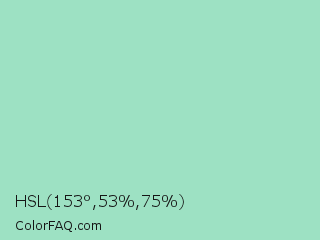 HSL 153°,53%,75% Color is a light green color and the nearest color is Sea Foam Green #9fe2bf. Hex code #9de1c3 and RGB value is rgb(157,225,195). In RGB color space, this color is composed of 62% red, 88% green, 76% blue, In CMYK color space, this color is composed of 30% cyan, 0% magenta, 13% yellow , 12% black , In HSL color space, this color has a hue angle of 153° , 53% saturation and 75% lightness.