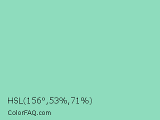 HSL 156°,53%,71% Color is a light green color and the nearest color is Algae Green #93dfb8. Hex code #8edcbd and RGB value is rgb(142,220,189). In RGB color space, this color is composed of 56% red, 86% green, 74% blue, In CMYK color space, this color is composed of 35% cyan, 0% magenta, 14% yellow , 14% black , In HSL color space, this color has a hue angle of 156° , 53% saturation and 71% lightness.