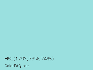 HSL 179°,53%,74% Color is a light cyan color and the nearest color is Morning Glory #9edee0. Hex code #9ae0df and RGB value is rgb(154,224,223). In RGB color space, this color is composed of 60% red, 88% green, 87% blue, In CMYK color space, this color is composed of 31% cyan, 0% magenta, 0% yellow , 12% black , In HSL color space, this color has a hue angle of 179° , 53% saturation and 74% lightness.