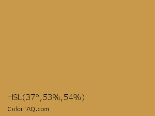 HSL 37°,53%,54% Color is a normal orange color and the nearest color is Tussock #c5994b. Hex code #c8984b and RGB value is rgb(200,152,75). In RGB color space, this color is composed of 78% red, 60% green, 29% blue, In CMYK color space, this color is composed of 0% cyan, 24% magenta, 63% yellow , 22% black , In HSL color space, this color has a hue angle of 37° , 53% saturation and 54% lightness.