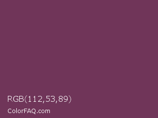 RGB 112,53,89 Color is a normal magenta color and the nearest color is Cosmic #76395d. Hex code #703559 and RGB value is rgb(112,53,89). In RGB color space, this color is composed of 44% red, 21% green, 35% blue, In CMYK color space, this color is composed of 0% cyan, 53% magenta, 21% yellow , 56% black , In HSL color space, this color has a hue angle of 323° , 36% saturation and 32% lightness.