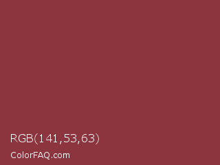 RGB 141,53,63 Color is a normal red color and the nearest color is Solid Pink #893843. Hex code #8d353f and RGB value is rgb(141,53,63). In RGB color space, this color is composed of 55% red, 21% green, 25% blue, In CMYK color space, this color is composed of 0% cyan, 62% magenta, 55% yellow , 45% black , In HSL color space, this color has a hue angle of 353° , 45% saturation and 38% lightness.