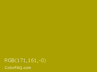 RGB 171,161,-0 Color is a normal yellow color and the nearest color is Buddha Gold #c1a004. Hex code #aba100 and RGB value is rgb(171,161,-0). In RGB color space, this color is composed of 67% red, 63% green, 0% blue, In CMYK color space, this color is composed of 0% cyan, 6% magenta, 100% yellow , 33% black , In HSL color space, this color has a hue angle of 56° , 100% saturation and 34% lightness.