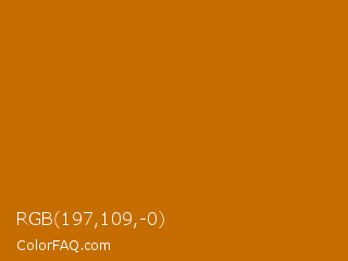 RGB 197,109,-0 Color is a normal orange color and the nearest color is Indochine #c26b03. Hex code #c56d00 and RGB value is rgb(197,109,-0). In RGB color space, this color is composed of 77% red, 43% green, 0% blue, In CMYK color space, this color is composed of 0% cyan, 45% magenta, 100% yellow , 23% black , In HSL color space, this color has a hue angle of 33° , 100% saturation and 39% lightness.